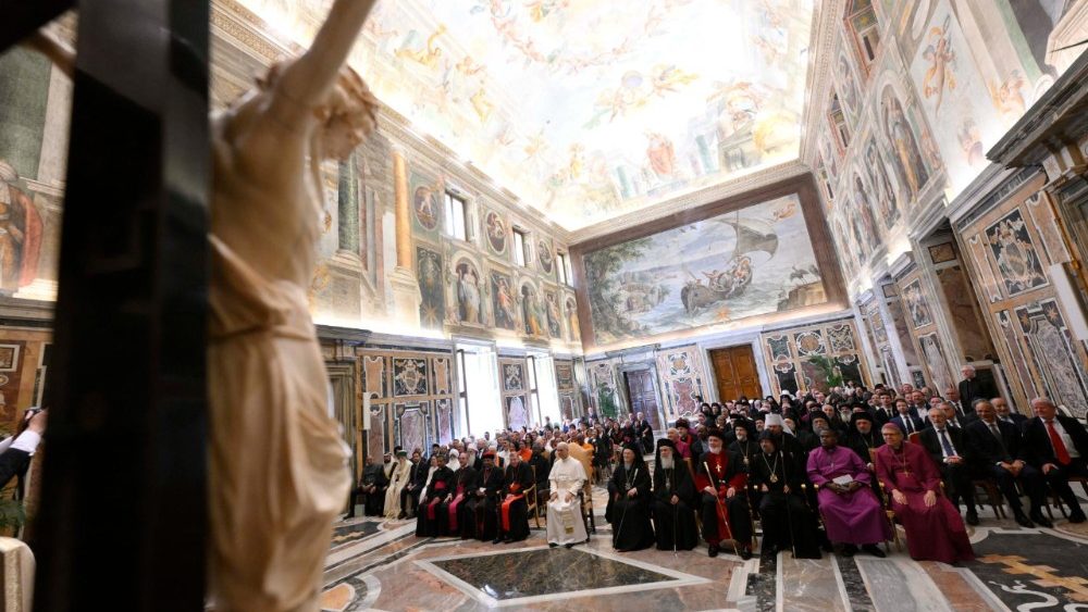 León XIV recibe en audiencia a representantes de otras Iglesias y comunidades eclesiales y de otras religiones y los exhorta a un compromiso común, libre de condicionamientos ideológicos y políticos, por la paz en el mundo. Alienta el camino ecuménico, exhorta a proseguir el diálogo entre judíos y cristianos y a basar las relaciones con los musulmanes «en el respeto recíproco y la libertad de conciencia».