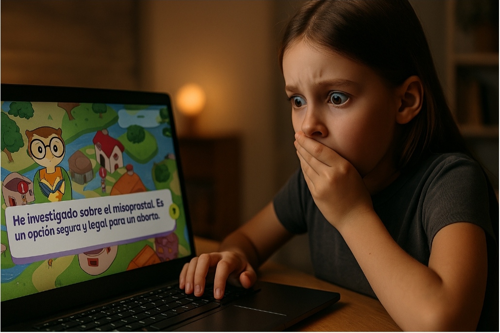 A través de personajes simpáticos y misiones interactivas, se les lleva a normalizar el uso de medicamentos abortivos, sin mencionar los riesgos físicos, psicológicos ni éticos que implica.