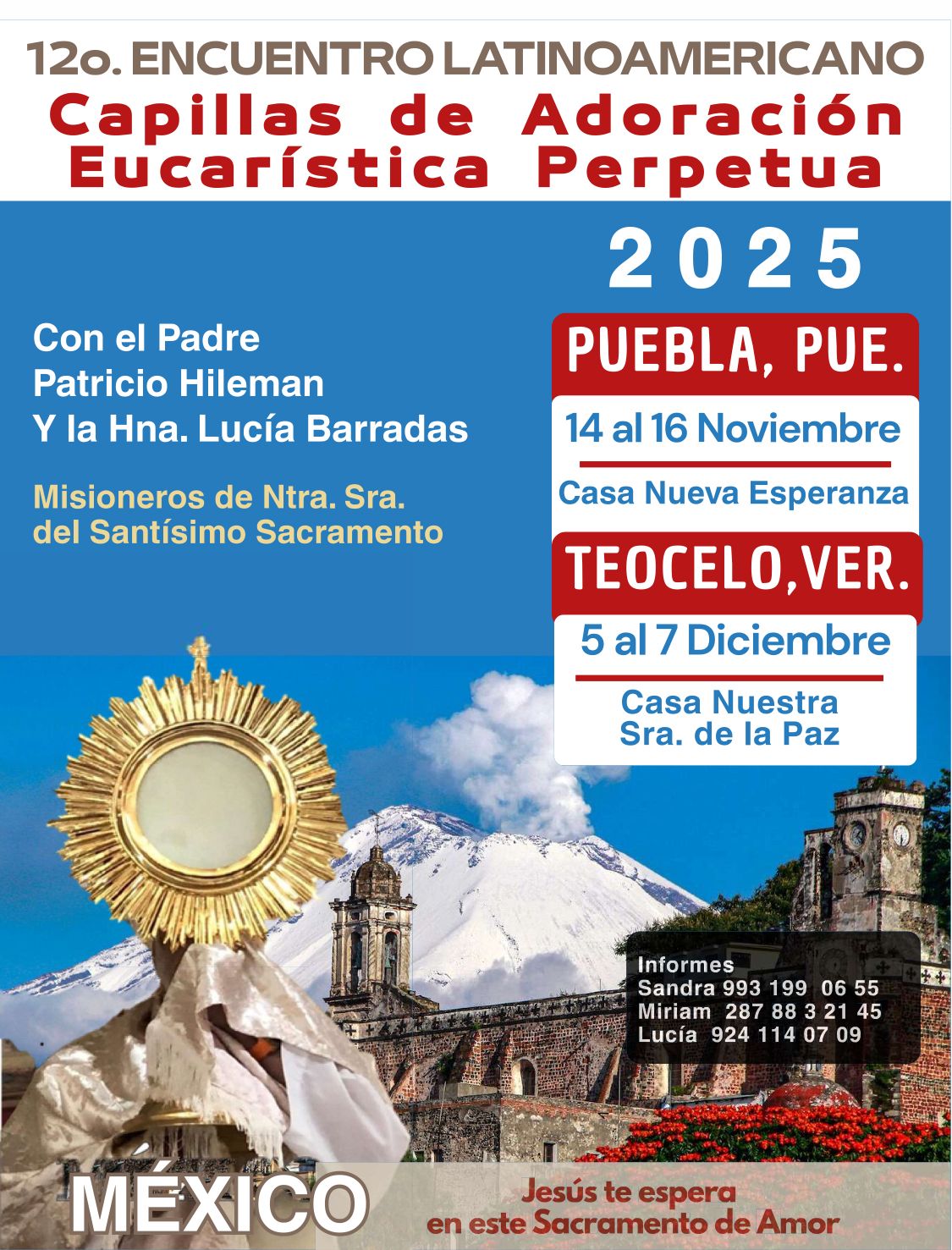 Una cordial invitación a la comunidad en general, para que apoyen y compartan entre sus contactos, adoradores de su capilla de Adoración Perpetua para que participen, en el 12° Encuentro Latinoamericano de Capillas de Adoración Eucarística con el presbítero Patricio Hileman y la hermana Lucia Barradas, Misioneros de Nuestra Señora del Santísimo Sacramento.