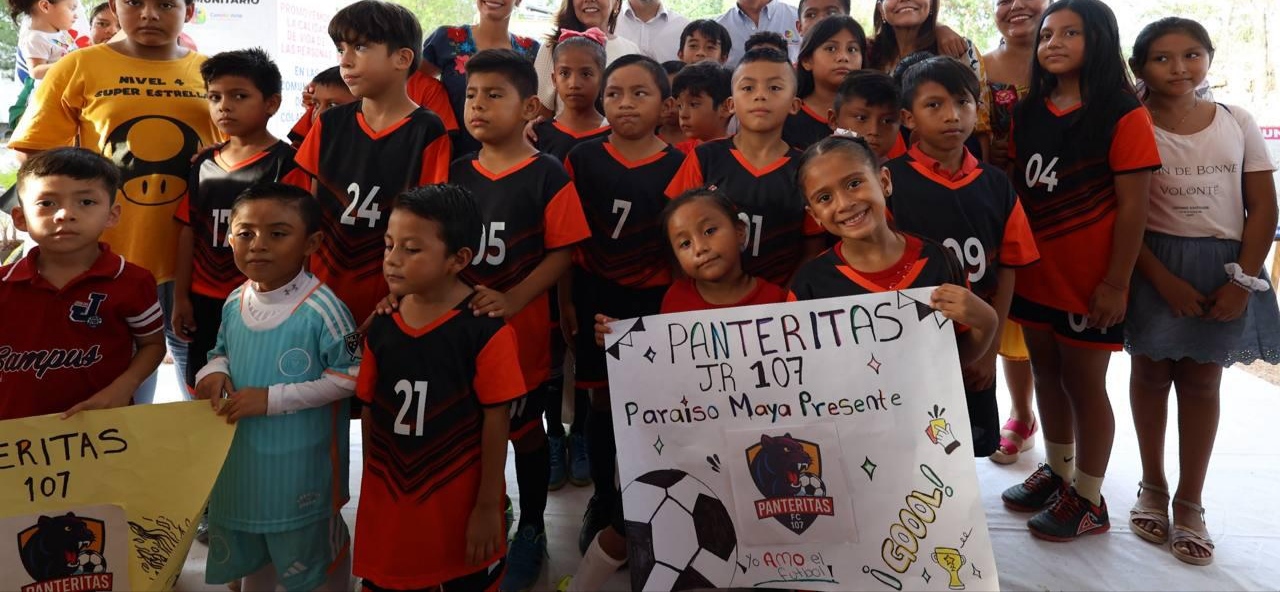 Luego de las emotivas palabras de vecinos, ciudadanos y servidores públicos, acompañados de los alumnos del equipo de futbol “Panteritas”, integrantes del comité de contraloría social y padres de familias dieron el banderazo oficial para edificar la obra.