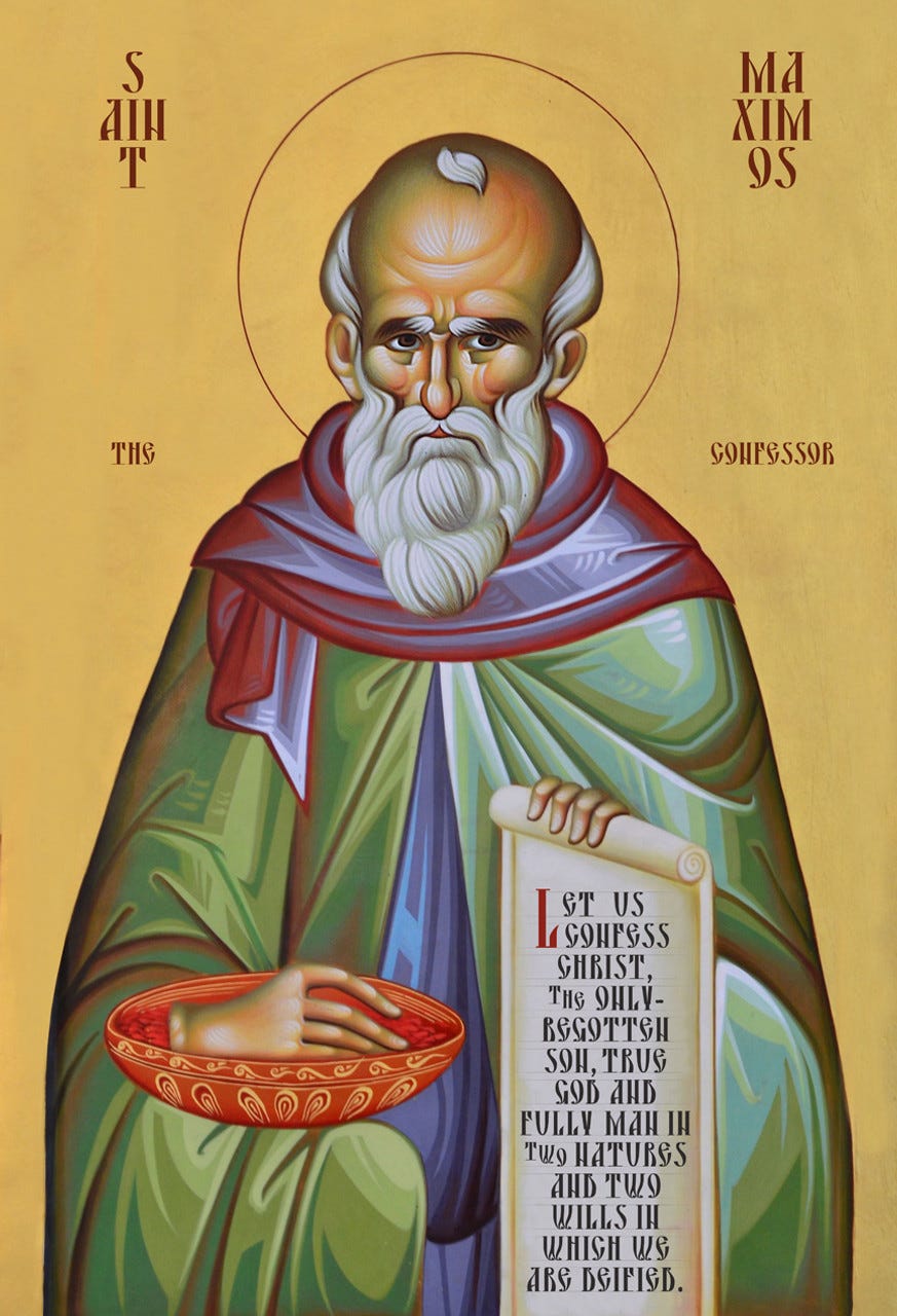 Los monotelistas, entre ellos Pirro, amigo de Máximo, retomaron lo dicho por el Concilio de Calcedonia y decidieron que Cristo tenía dos naturalezas pero solo una voluntad, la divina. Máximo no estuvo de acuerdo. La naturaleza divina de Dios no aniquiló ninguna parte de la naturaleza humana en la Encarnación, tampoco la voluntad humana. Eso no hubiera sido amor. Máximo afirmaba que la facultad de la voluntad es parte de la naturaleza humana, y por tanto Jesús tuvo dos voluntades, una humana y otra divina. En Cristo, Dios Hijo se hizo hombre enteramente, con un cuerpo, un alma y una voluntad humanas, para que todo el ser humano -cuerpo, alma y voluntad- pudiera vivir a la manera de Dios. En Getsemaní, la voluntad divina luchó con la voluntad humana en Cristo para mostrarnos que la voluntad humana encuentra su plena realización -su plena libertad- en un acto de unión libre y amorosa con Dios.