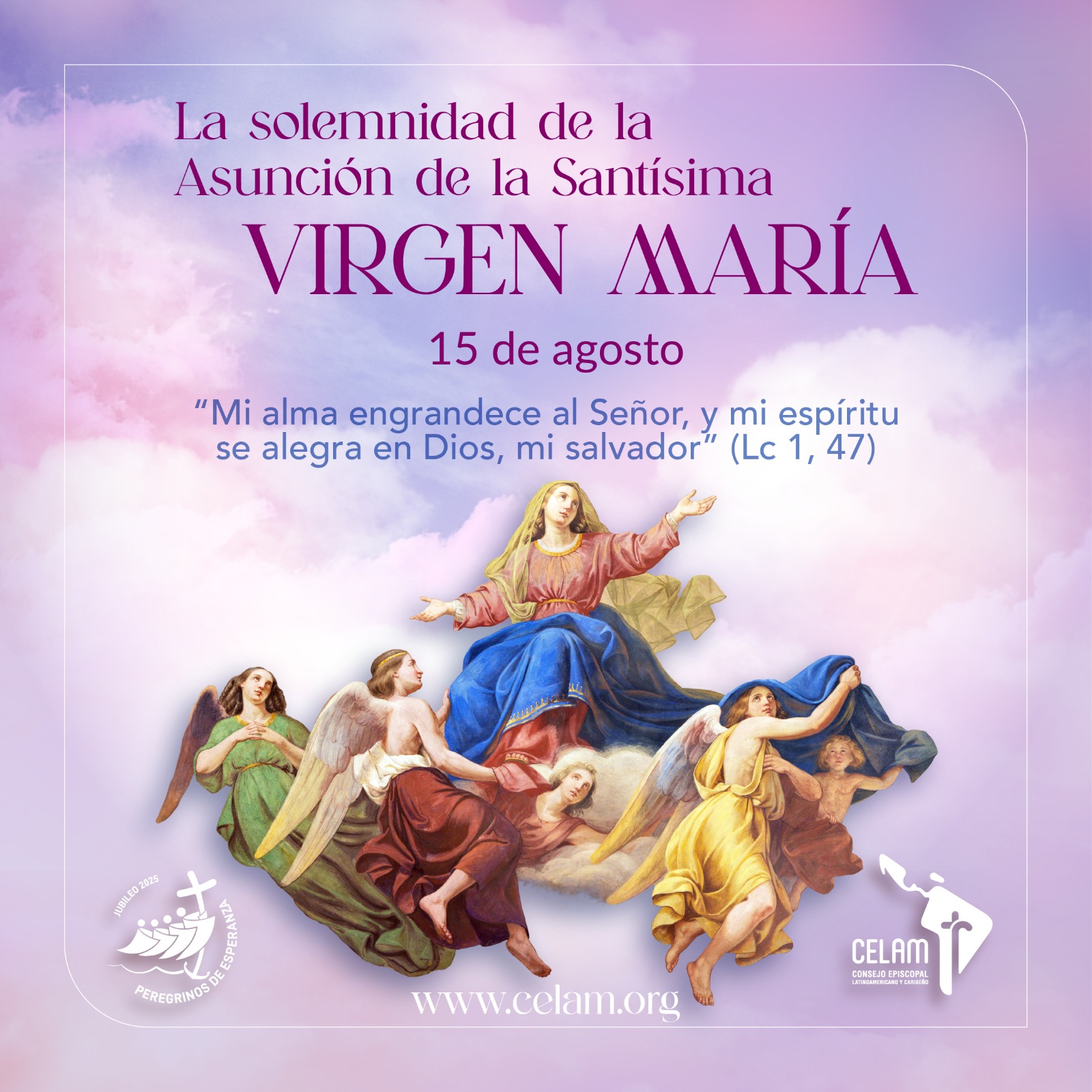 Hoy celebramos la Asunción de la Santísima Virgen María, quien fue llevada al cielo en cuerpo y alma, signo de esperanza y promesa para todo el pueblo fiel de Dios.