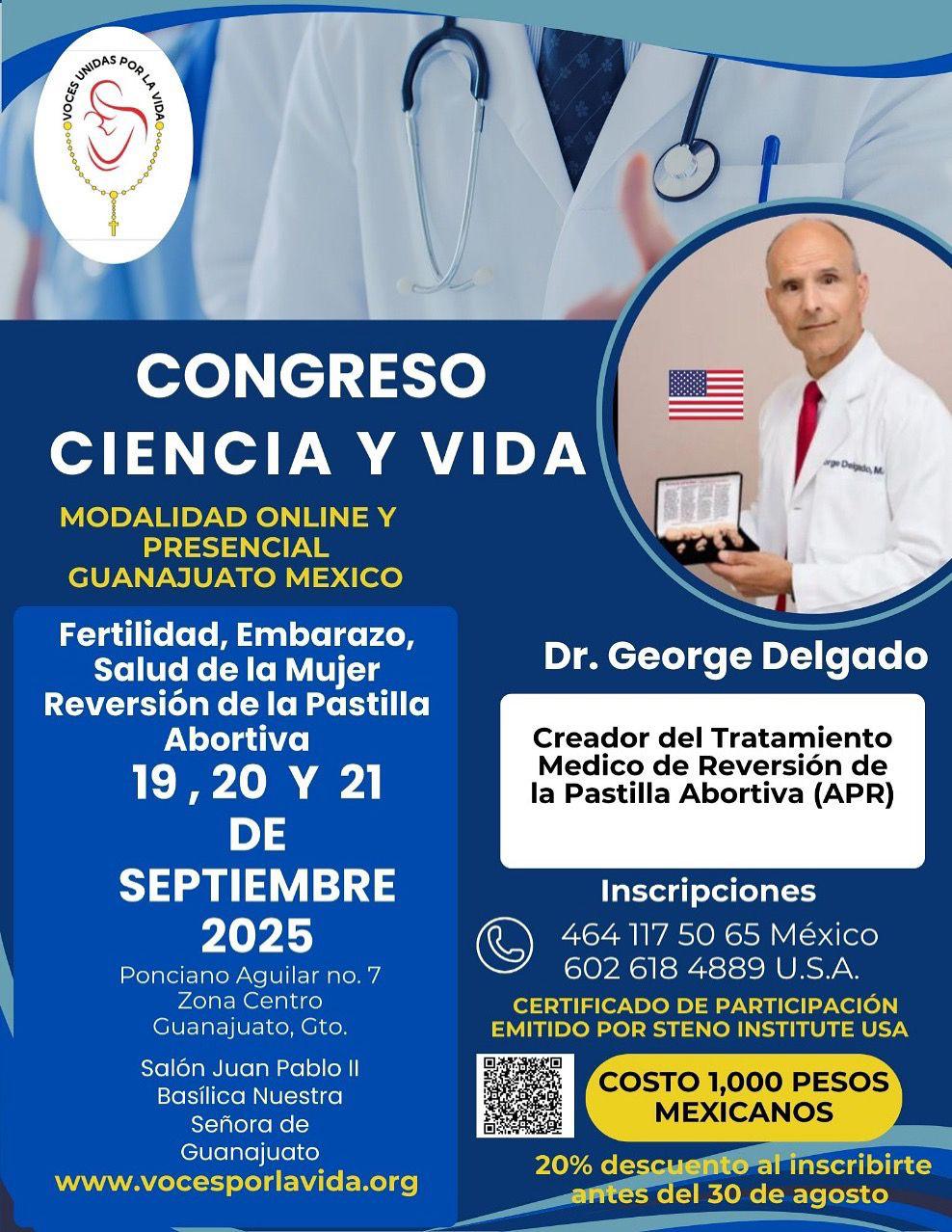 Inscripciones congreso de médicos ciencia y vida, a realizarse del 19—21 de septiembre del 2025 en Guanajuato México en su modalidad presencial y virtual.