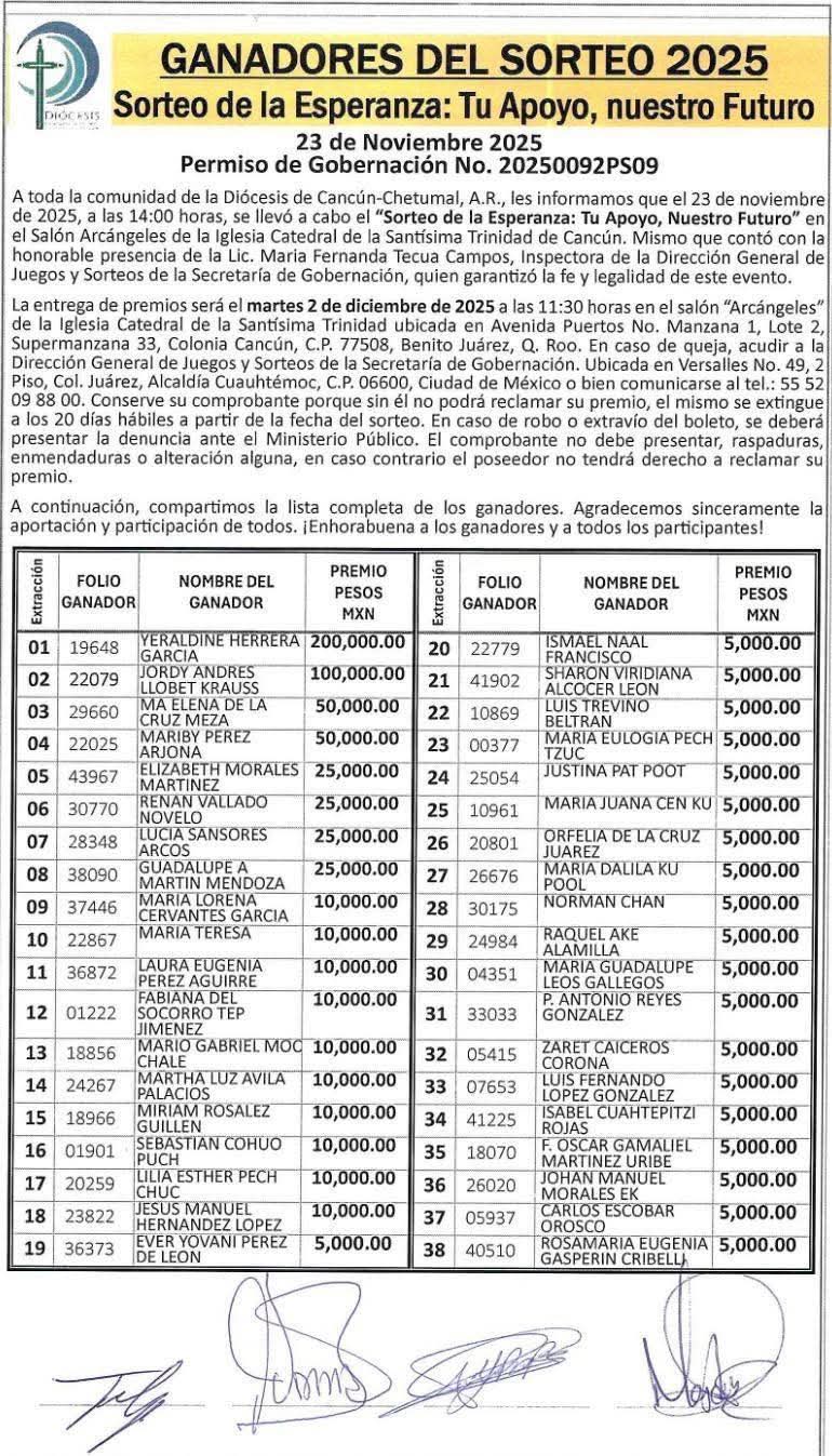 Lista de ganadores del Sorteo 2025 Sorteo de la Esperanza; Tu Apoyo, Nuestro Futuro.