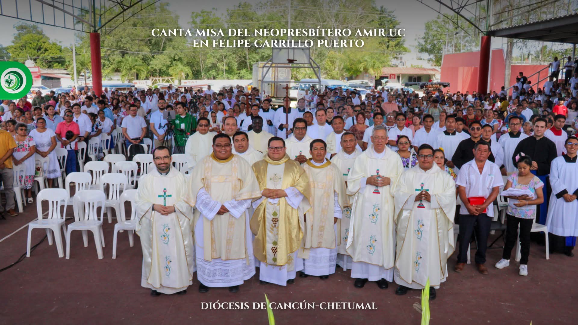 Felipe Carrillo Puerto, Quintana Roo.— Con gran alegría compartimos la celebración de la Canta Misa del neo—presbítero Amir de Jesús Uc Abán, llevada a cabo en la comunidad de Felipe Carrillo Puerto.