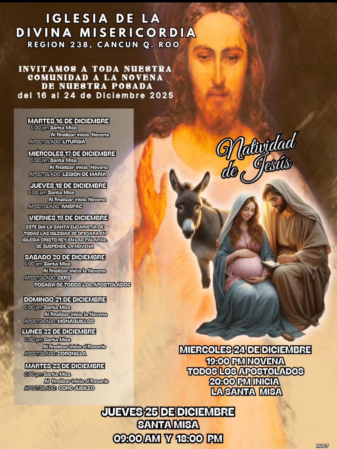 - La cita es en el Santuario de la Divina Misericordia, en la Supermanzana 238 en esta ciudad a unirse al período del 16 al 24 de diciembre.