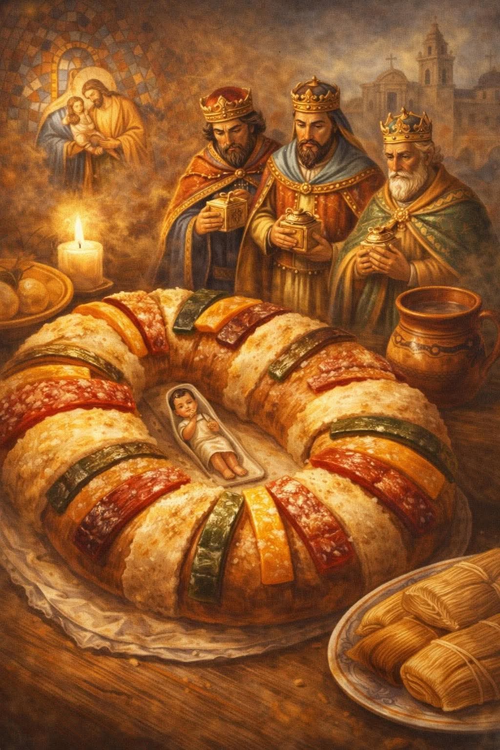 • Así, la Rosca de Reyes se convirtió en una tradición viva que mezcla Europa medieval, simbolismo cristiano y cultura popular mexicana. No es solo un pan dulce: es una historia que se parte, se comparte y se hereda cada año alrededor de la mesa.
