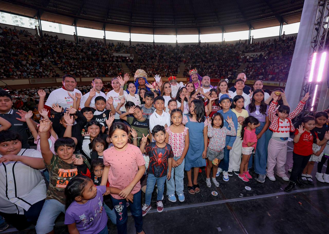 Dentro del evento, los trabajadores públicos presentes cortaron de forma simbólica la tradicional rosca de reyes con los niños invitados al escenario principal, mientras los demás infantes desde su lugar comían su rebanada de ese delicioso pan característico de esta fecha, el cual vino en su box lunch de regalo a la entrada.