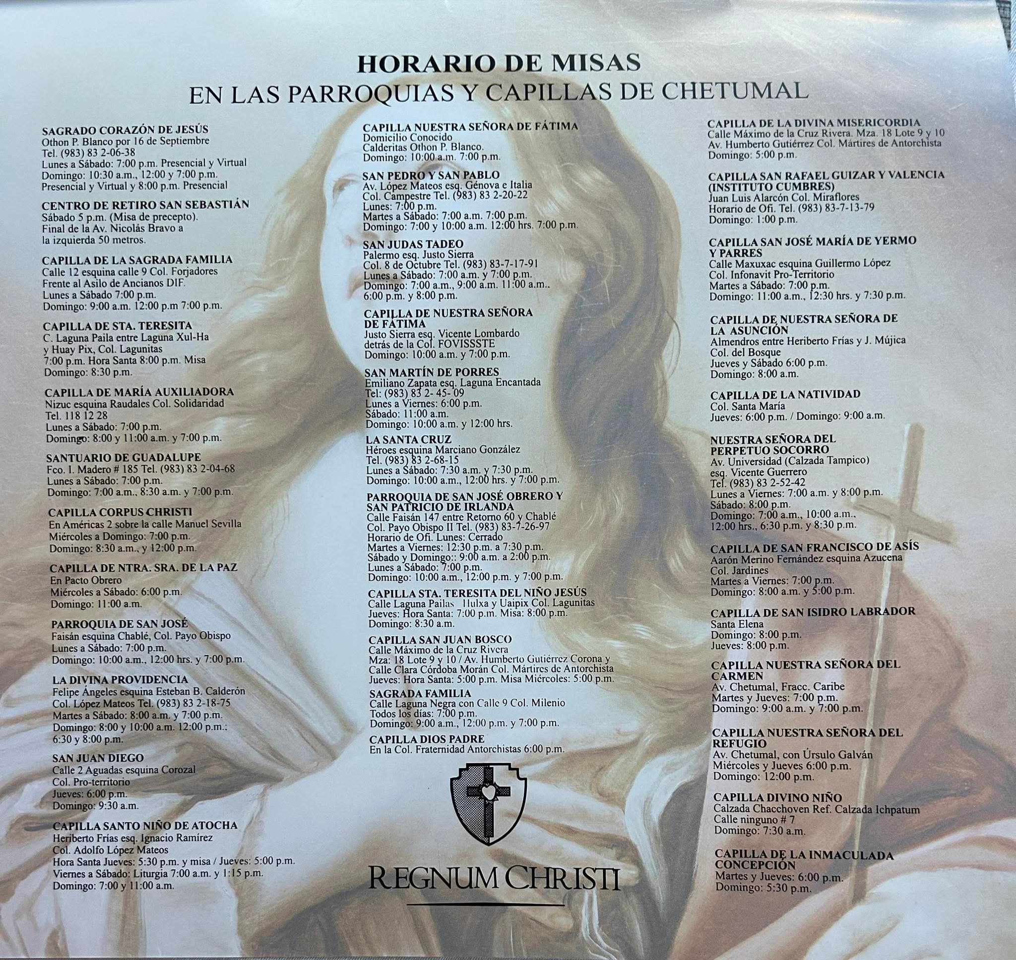 Informar a nuestros amables lectores, es proporcionarles los horarios de la Santa Misa de las parroquias y capillas en Chetumal, Quintana Roo.