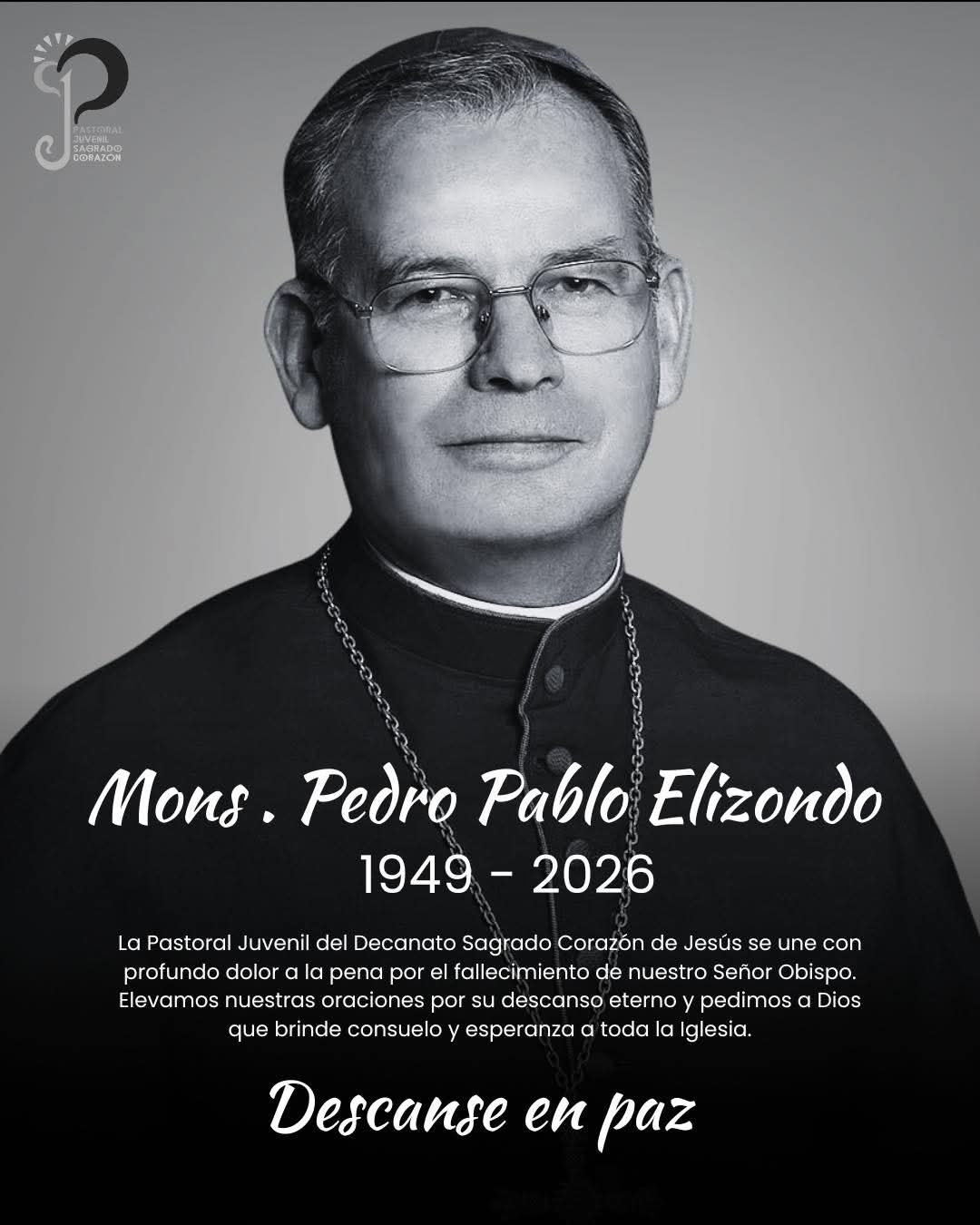 Con profundo dolor, pero con la esperanza puesta en Cristo Resucitado, la Pastoral Juvenil del Decanato Sagrado Corazón de Jesús se une a toda la Iglesia por el fallecimiento de nuestro Señor Obispo.