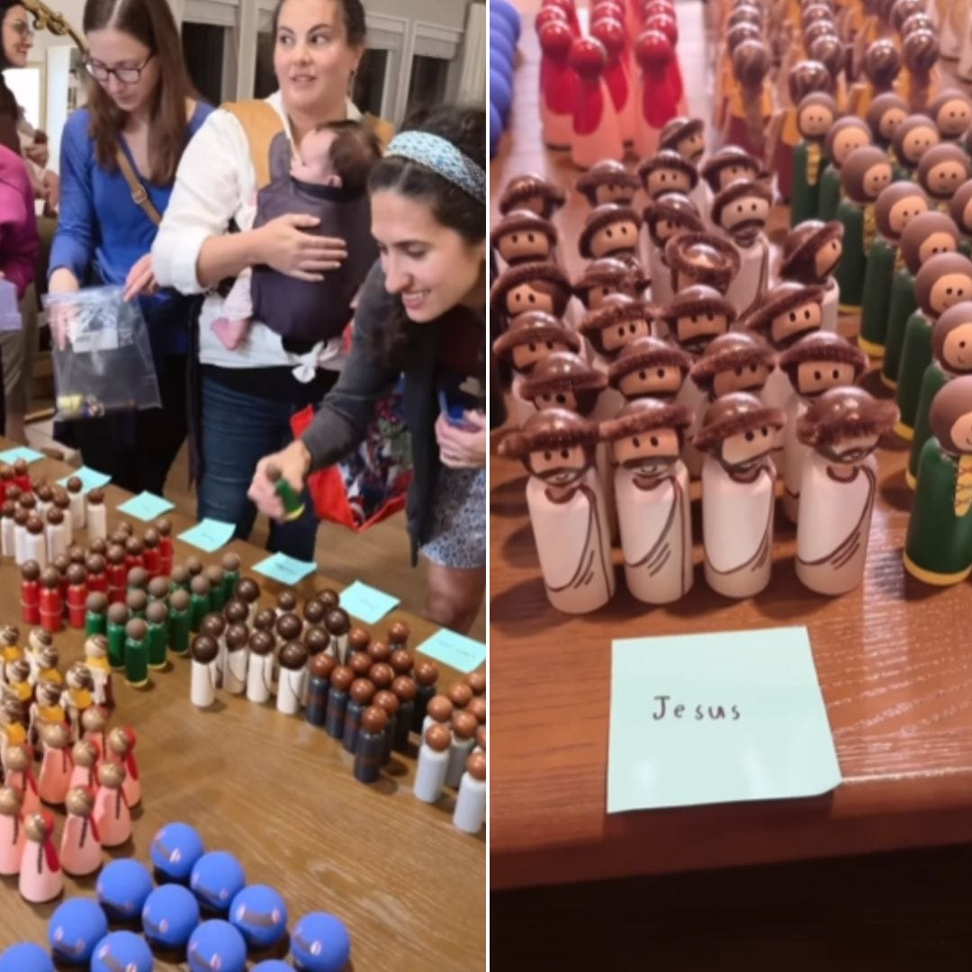 En un video que subió a su instagram, Kristen indicó que la idea surgió como una experiencia comunitaria. Junto a otras familias, decidieron pintar sencillos muñequitos de madera —conocidos como peg dolls—, representando a las personas que acompañaron a Jesús durante su Pasión, Muerte y Resurrección.