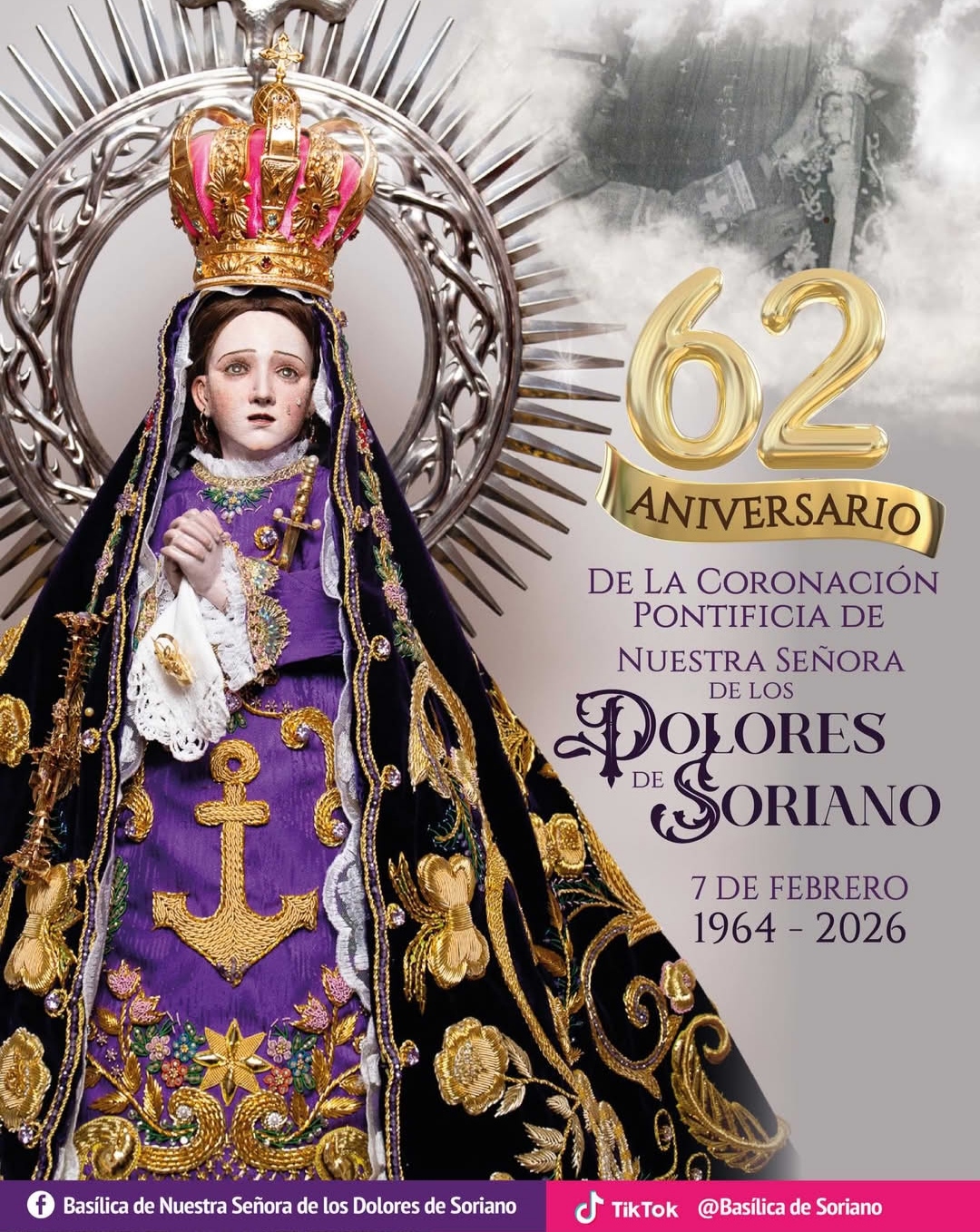 𝟔𝟐 𝑨𝒏𝒊𝒗𝒆𝒓𝒔𝒂𝒓𝒊𝒐 𝒅𝒆 𝑪𝒐𝒓𝒐𝒏𝒂𝒄𝒊ó𝒏 𝑷𝒐𝒏𝒕𝒊𝒇𝒊𝒄𝒊𝒂 𝒅𝒆 𝑵𝒖𝒆𝒔𝒕𝒓𝒂 𝑺𝒆ñ𝒐𝒓𝒂 𝒅𝒆 𝒍𝒐𝒔 𝑫𝒐𝒍𝒐𝒓𝒆𝒔 𝒅𝒆 𝑺𝒐𝒓𝒊𝒂𝒏𝒐, 𝑷𝒓𝒊𝒏𝒄𝒊𝒑𝒂𝒍 𝑪𝒆𝒍𝒆𝒔𝒕𝒊𝒂𝒍 𝑷𝒂𝒕𝒓𝒐𝒏𝒂 𝒅𝒆 𝒍𝒂 𝑫𝒊ó𝒄𝒆𝒔𝒊𝒔 𝒅𝒆 𝑸𝒖𝒆𝒓é𝒕𝒂𝒓𝒐.
