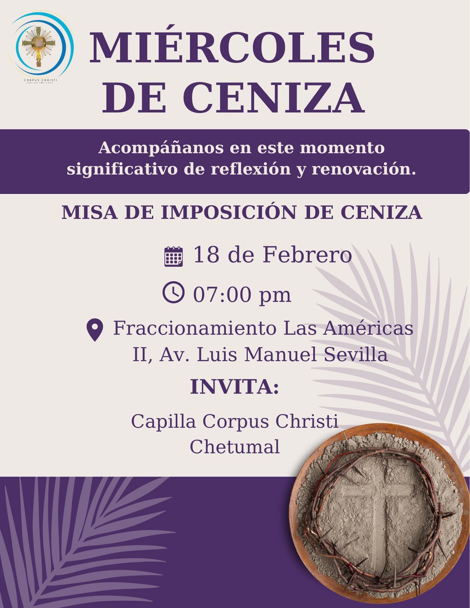 Inicia el camino de la Cuaresma, tiempo de conversión, oración y preparación del corazón, en la capilla de Corpus Christi en Chetumal.