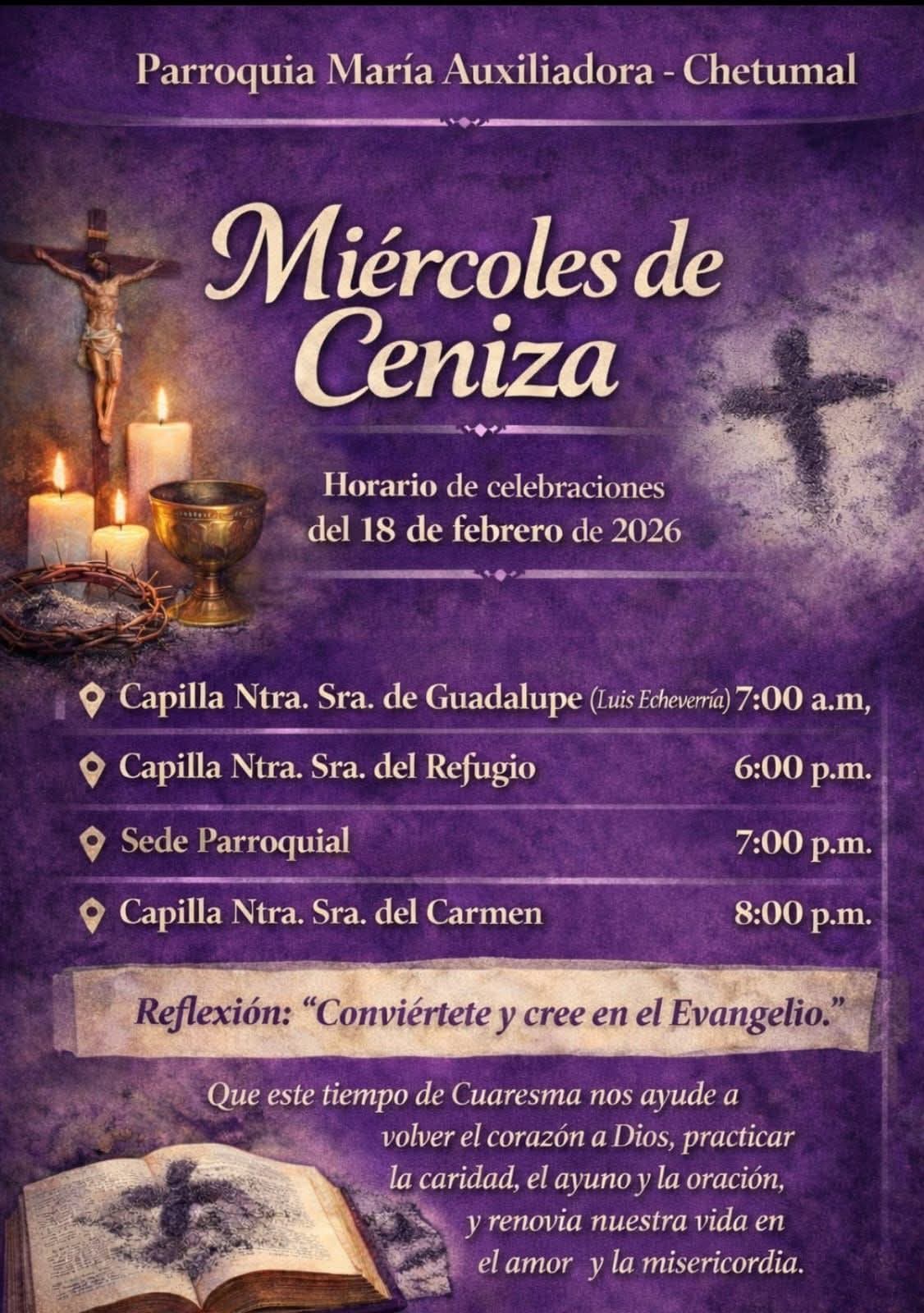 “Conviértete y cree en el Evangelio.” Que este tiempo santo nos impulse a practicar la caridad, fortalecer la oración y vivir el ayuno como expresión sincera de amor a Dios y a nuestros hermanos.