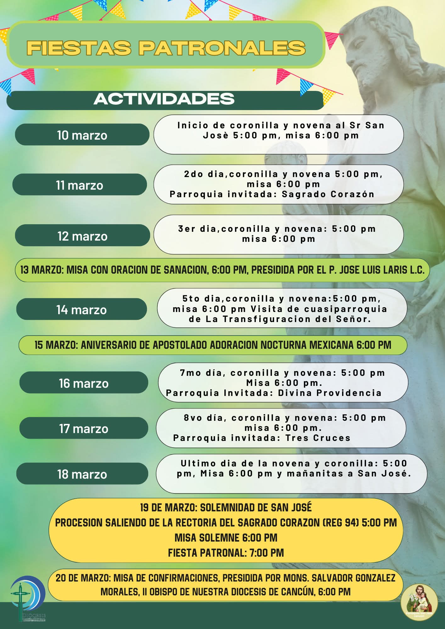 • Con mucha alegría apostolados y ministerios invitan a sus vecinos, ciudadanos y a toda la comunidad, a participar en las Fiestas Patronales en honor a San José, en Cancún.