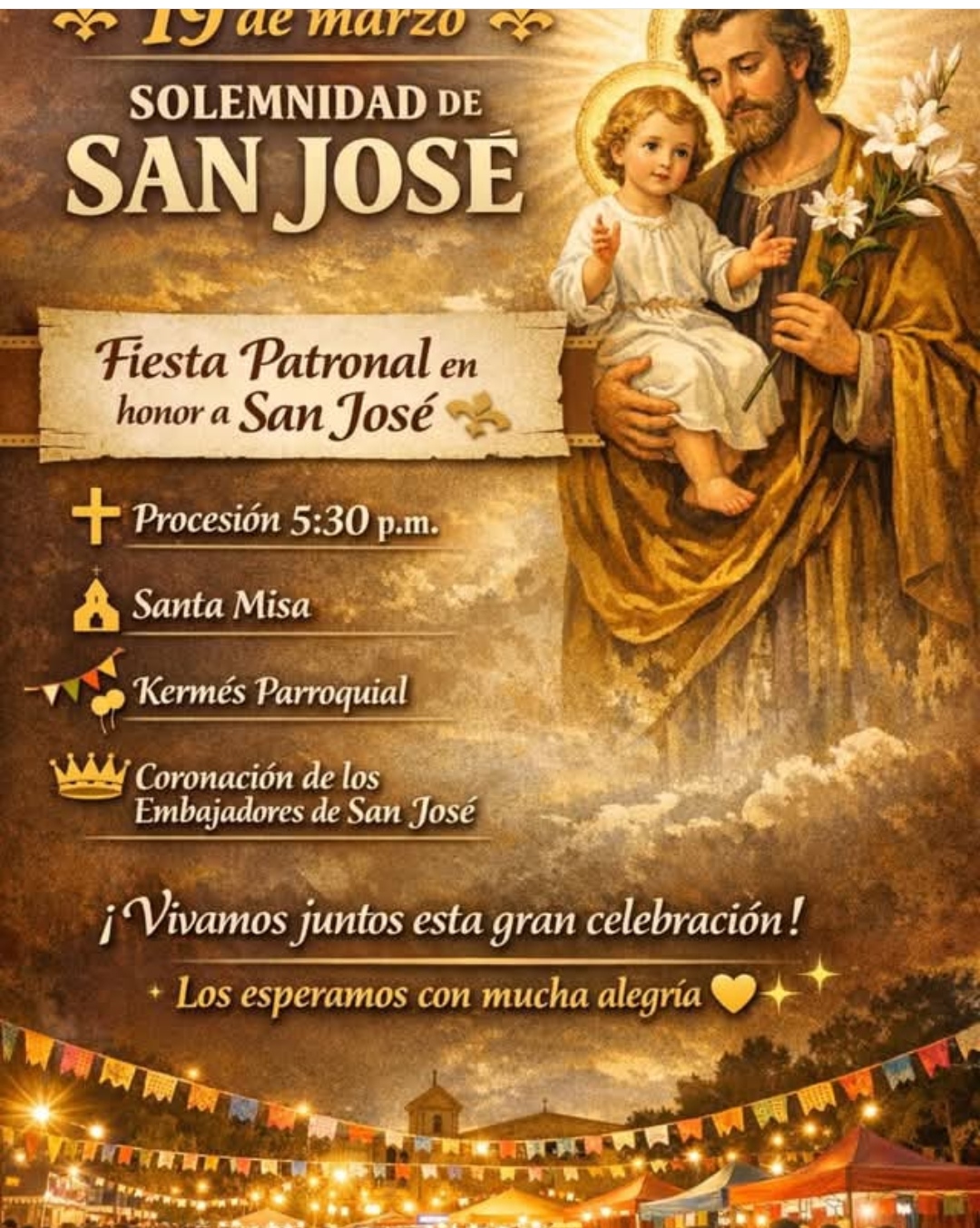 Vive esta gran celebración como comunidad, da gracias a Dios por el ejemplo y protección de San José. ¡Los esperan con amor!, en